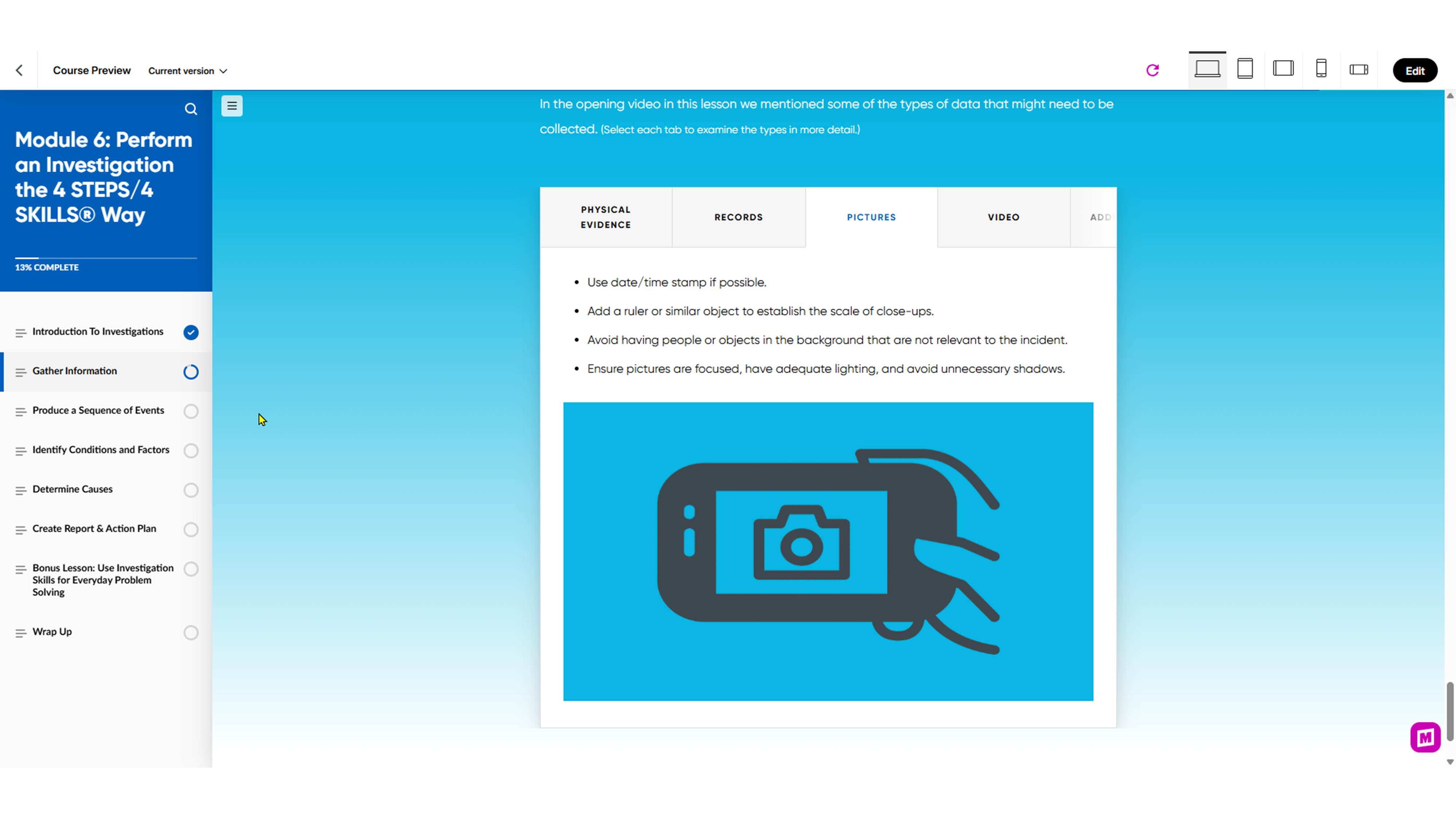 Conduct investigations using the simplified 4 STEPS/4 SKILLS® approach